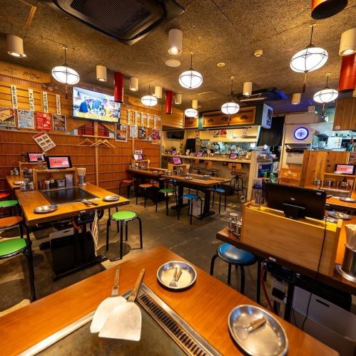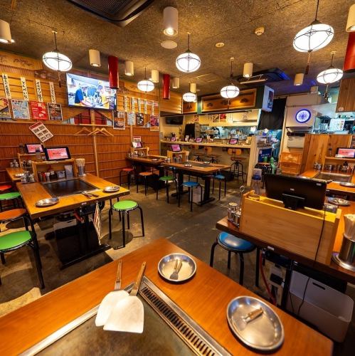 提灯が飾られた店内は和の雰囲気が漂い、居心地抜群◎和の雰囲気は心を和ませ、リラックスしながらお食事とお飲み物をお楽しみいただけます♪お一人様はもちろん、デートや女子会にもオススメです☆メニューはもんじゃやお好み焼きだけでなく、鉄板焼きも豊富に取り揃えておりますので、お好みに合わせてお楽しみください!
